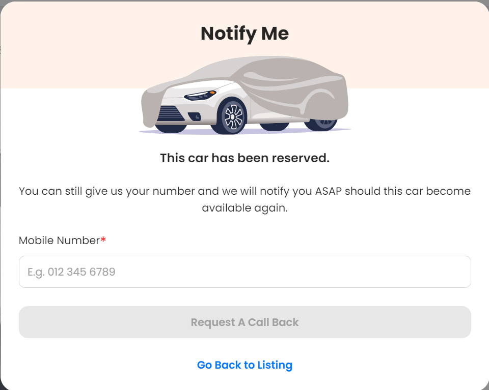 Once you find a car you want, you can reserve it to ensure no one else buys it while you are still deciding! To help you make that decision, you can book a test drive as nothing beats a real test drive to get the feel of the car. If the car you want is reserved, you can provide your phone number so you will be notified should the car become available!