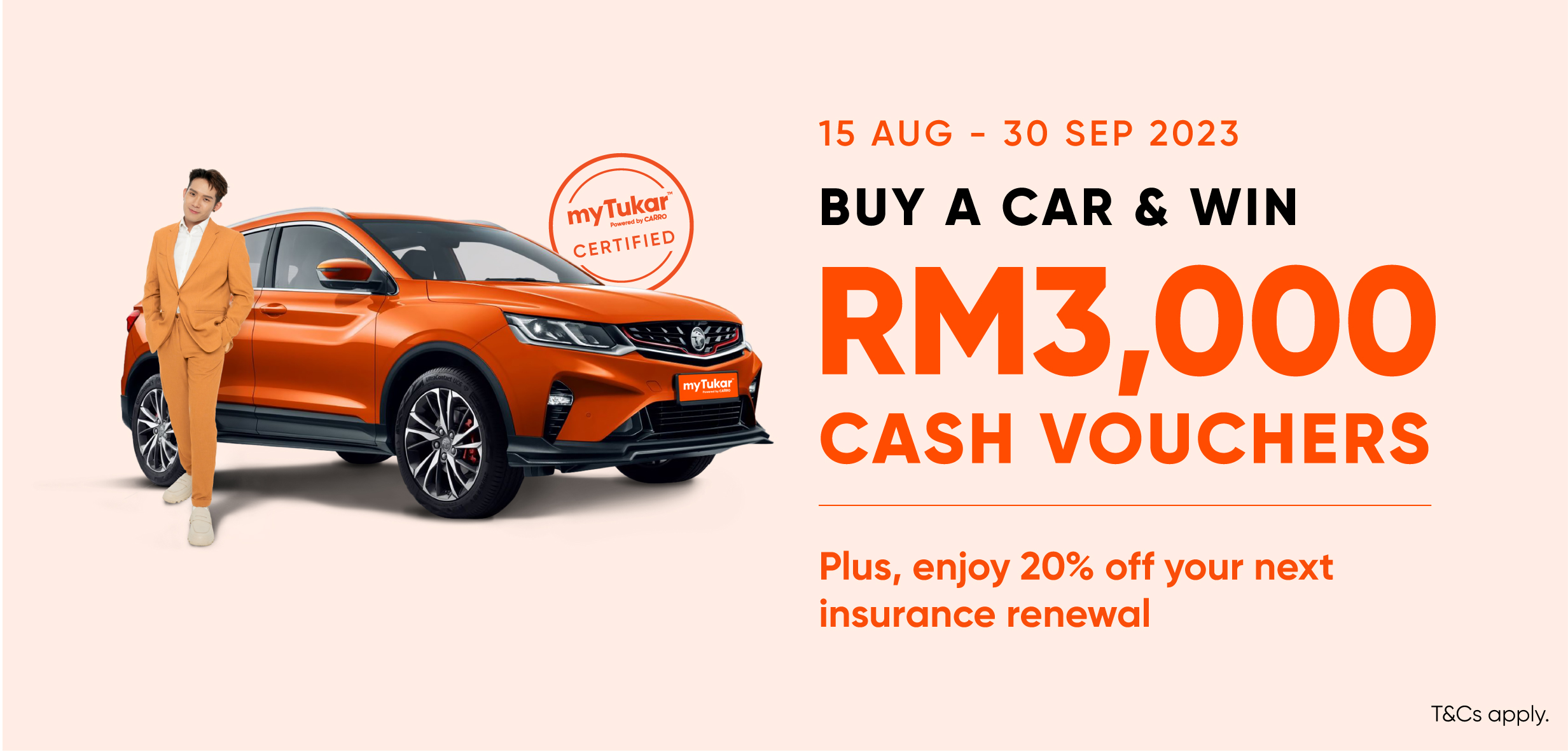 Buy a myTukar Certified car, get RM3,000 cash voucher and 20% off your next insurance renewal!