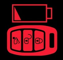 Maksudnya: Ini bermaksud bateri kunci fob anda hampir habis. Bila bateri habis, kereta anda tidak akan dapat dihidupkan atau dibuka. Sesetengah kereta menggantikan simbol bateri ini dengan simbol kilat.